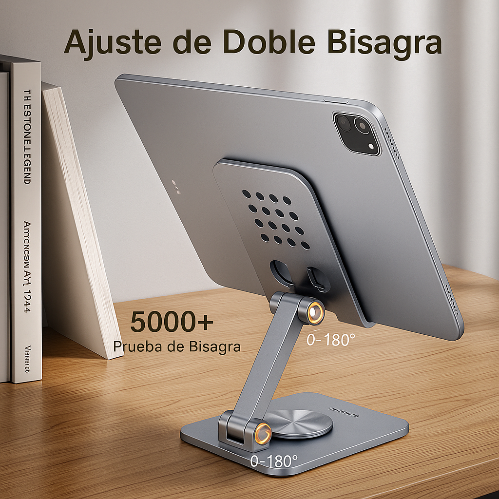Este soporte está diseñado para ofrecer comodidad, estabilidad y libertad de movimiento. Su base giratoria 360° te permite ajustar el ángulo de visión sin mover el soporte, ideal para videollamadas, trabajo, diseño o entretenimiento.
