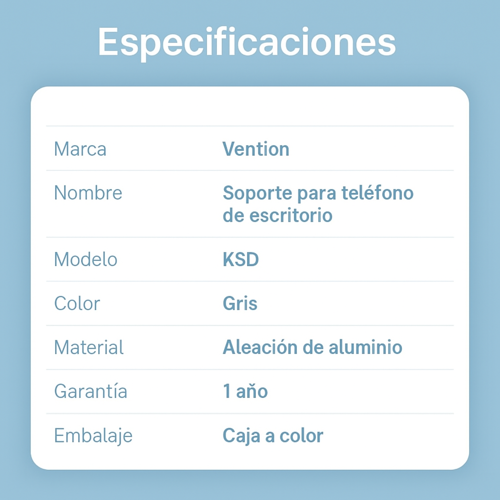 Fabricado en aleación de aluminio, el soporte combina durabilidad y estilo. Su estructura resistente ofrece una base sólida incluso para los móviles más grandes.